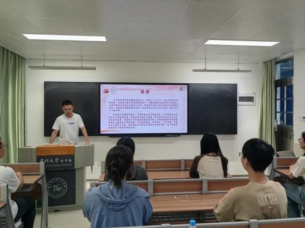 法学院2023级环资经济财税法学硕士团支部匡祎婧同学在主题学习中结合当下身份表示:作为厦门大学法学院的一名研究生,我们要紧密团结在党中央周围,自强自信,认真学习科学理论知识,为建设富强、民主、文明、和谐、美丽的社会主义现代化强国而不懈奋斗!