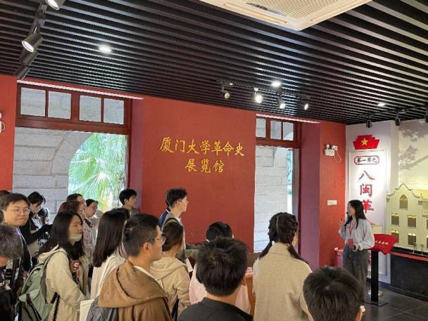 2023 级民商法学硕士班与国际海洋法学硕士班团支部前往厦门大学革命史展览馆,共同举办“勇担时代重任,争做有为青年”强国复兴主题团课。在值班讲解员的带领下,团员青年参观了“八闽革命摇篮”“坚持红旗不倒”“抗日救亡基地”“东南民主堡垒”专题馆,了解到厦门大学创办、播撒革命火种、掀起爱国运动的革命史。参观结束后,团支书熊李湘儿、黄睿分别讲述团课,强调要始终发扬“不破楼兰终不还”的斗争精神、始终遵循“十个指头弹钢琴”的科学方法。