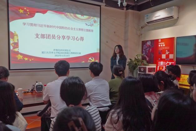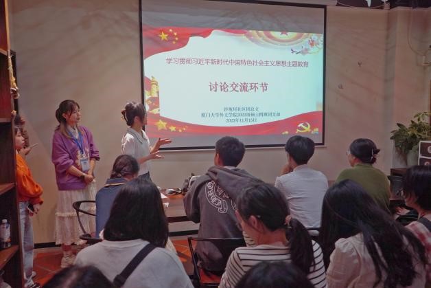 学院团委将理论学习贯穿主题教育全过程,各学生组织结合具体工作开展专题研讨和读书分享会,学深悟透习近平新时代中国特色社会主义思想。各团支部积极走出去开展联学共建。其中,2023级英语一班、二班团支部积极参与校团委和西藏团区委联合开展的大学生志愿服务西部计划宣讲交流会,2023级本科法语班团支部联合福海社区和厦门市思明区文物保护志愿协会开展“观传统闽南民居,做新时代文化传承者”主题团日活动;2023级硕士四班团支部走入沙坡尾社区,与沙坡尾团总支开展“挺膺担当”专题联学活动;2022级英语三班团支部在芙蓉二学生社区青马工程实践基地开展“厚书读薄,薄书读厚——厦大与青年马克思主义者”读书会活动,引领青年团员不断坚定理想信念、坚守使命追求。
