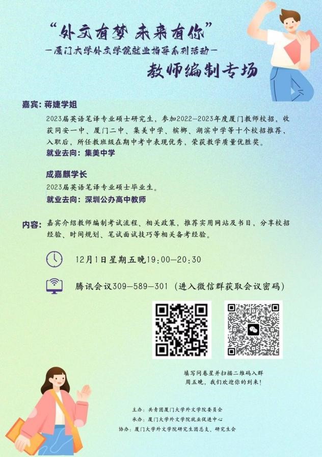 开展厦门大学2023年毕业生就业暨2024届实习见习双选会(外文学院专场)