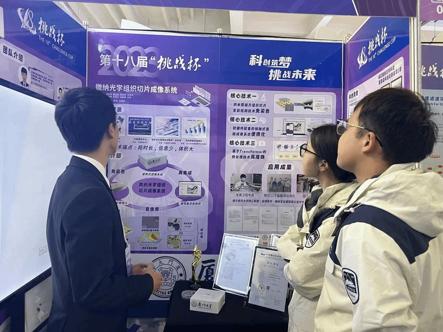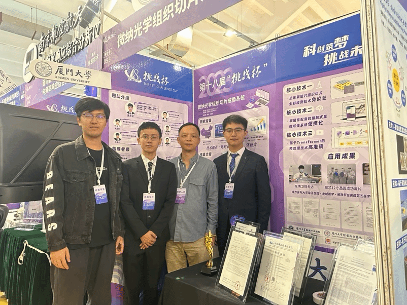 他们在第十八届“挑战杯”全国大学生课外学术科技作品竞赛决赛中荣获特等奖,研发微纳光学组织切片成像系统,革新了传统病理组织切片检查中的化学染色过程,创造了国内首个无需染色即可实现组织切片全彩成像的系统。