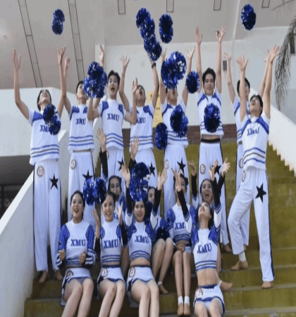 沈晓菲参与校啦啦操比赛(第一排右1)