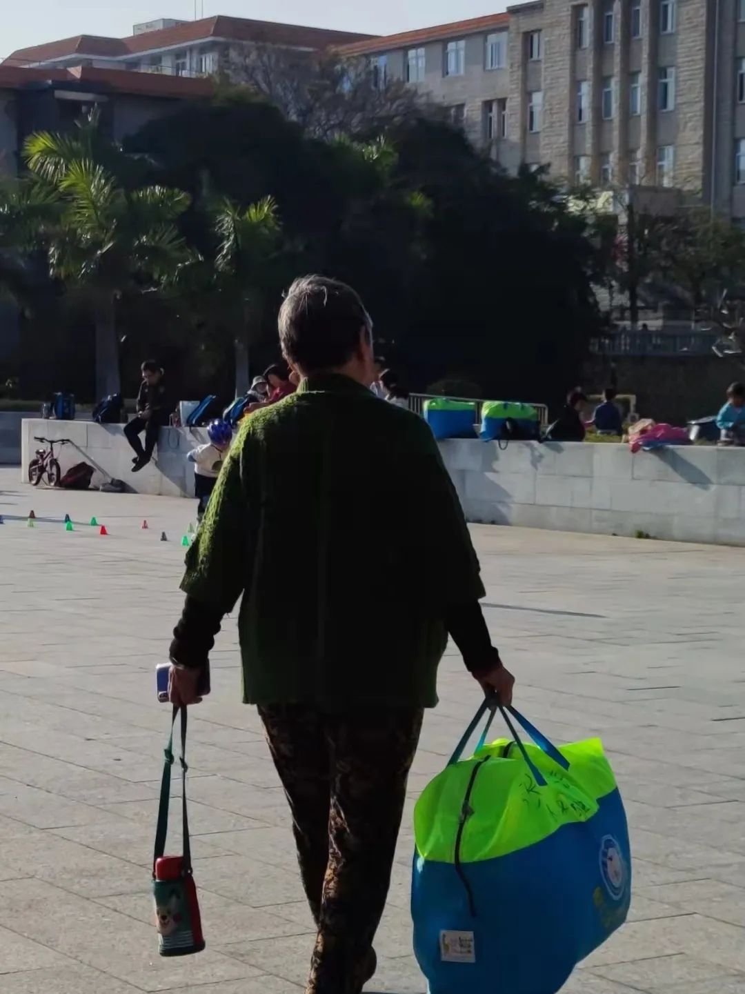 “周一到周五每天下午四点多的时候,我都会到白城校门这边的天台来等着接孙女放学,孙女就在厦大幼儿园上学,今年刚刚满五岁。我已经七十多岁了,平时也没有什么事情要做,再加上儿子在厦大当老师教书,比较忙,所以照顾孙女的事情就由我来做了。平时在家里我会做做饭,日子虽平淡但也挺感到幸福。孩子身体不错,自己的身体也还算健康,平时能给儿女帮一点忙自己也很开心。”