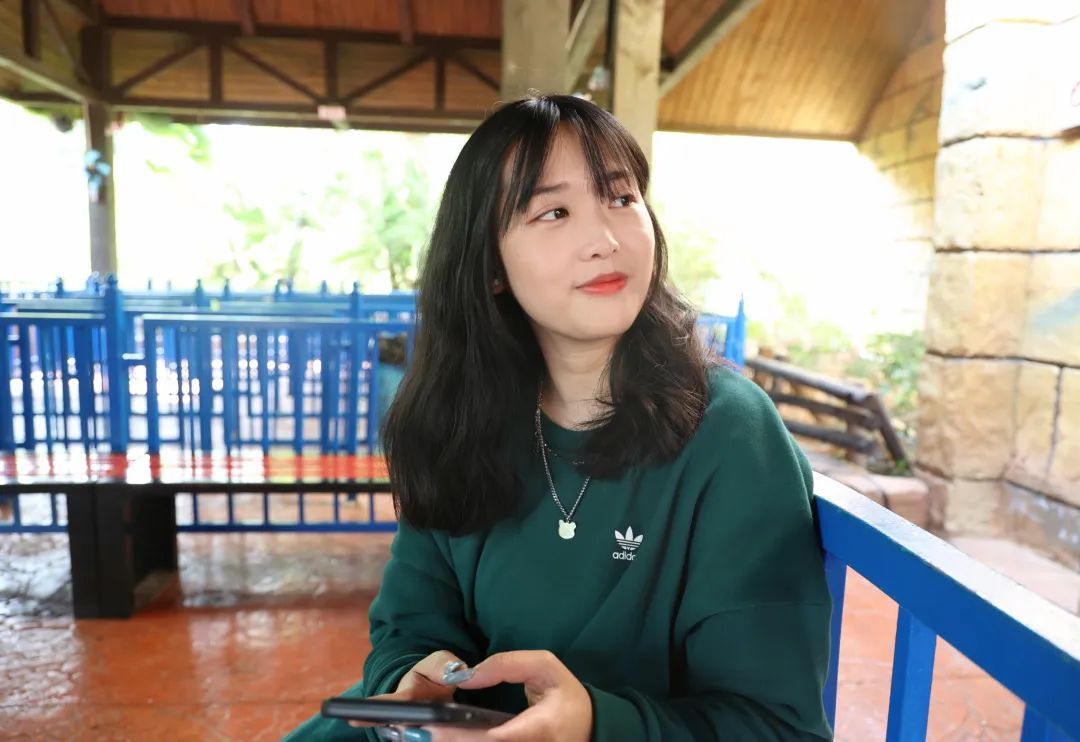 “平时休息的时候用手机看抖音,电视剧我平时一般不敢看,看了我就心里老想着要把它看完,我们平时要做事情,所以除非放假才可以看。我去年看过那个山海情,知道厦大的研究生支教团,我就觉得很好啊,是在做很有意义的事情。”
