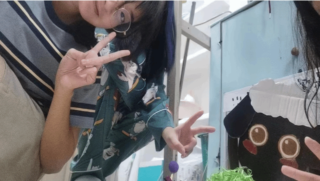 第一次见面,舍友小绿就给我留下了深刻的印象。与众不同的发色和张扬的风格,给人一种“生人勿近”的感觉。所以,刚开始和她相处时我还有些小心翼翼,但在一次次的玩笑调侃、互帮互助中,我逐渐感受到了她可爱与友善的一面。