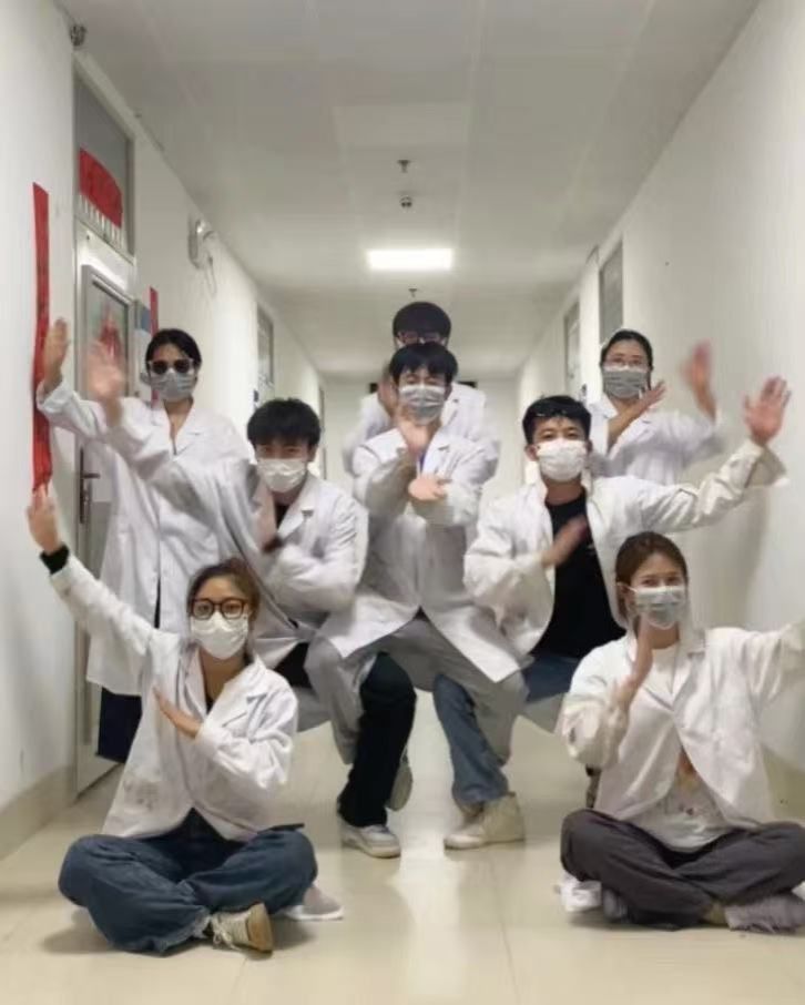 暑假留校做实验的生活有些许枯燥,还面对着不小的科研压力。拍抖音就成为我们课题组释放压力的一种途径。我们用舞蹈“解放天性”,用视频传递快乐,用欢笑“打倒”压力。我们总说:“和大家在一起,人是I着进来,E着出去的。”